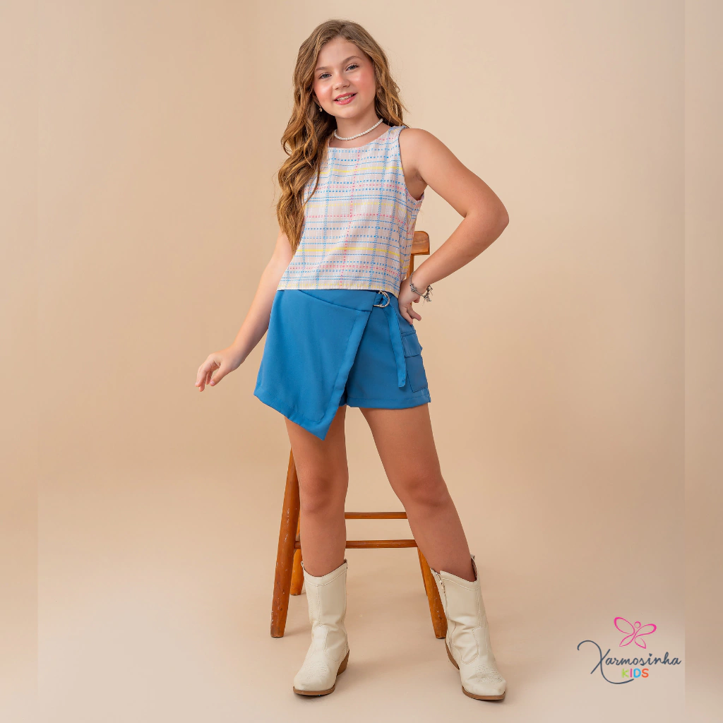 Short: Alfaiataria (Composição: 92% Viscose 8% poliéster)é o tecido ideal para macacão, vestidos, que aparentam ser feitas em jeans, mas tem o toque macio e caimento leve.